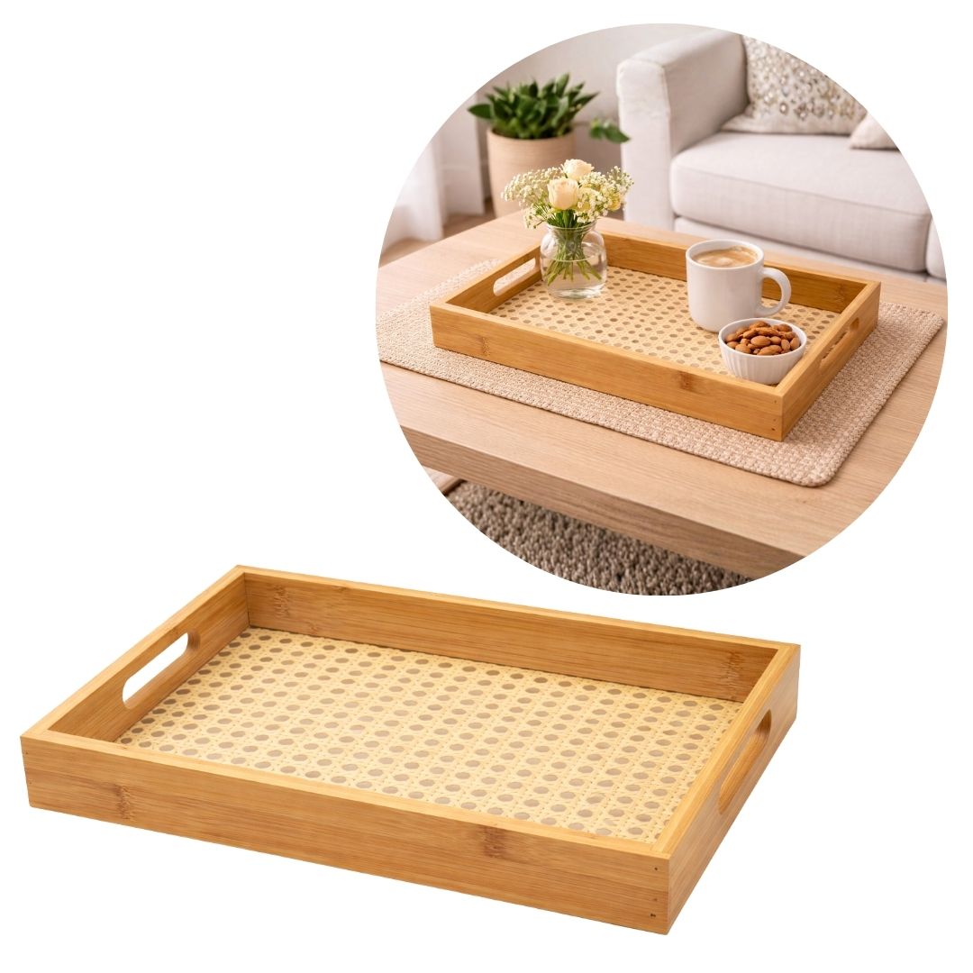 A Bandeja Retangular em Bambu com Palha Trançada Premium é uma peça versátil, elegante e funcional, ideal para quem busca praticidade aliada a um design sofisticado.