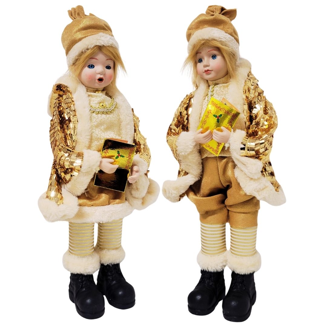 Casal Bonecos Coral Natal Decor Musical à Corda Dourado 42cm