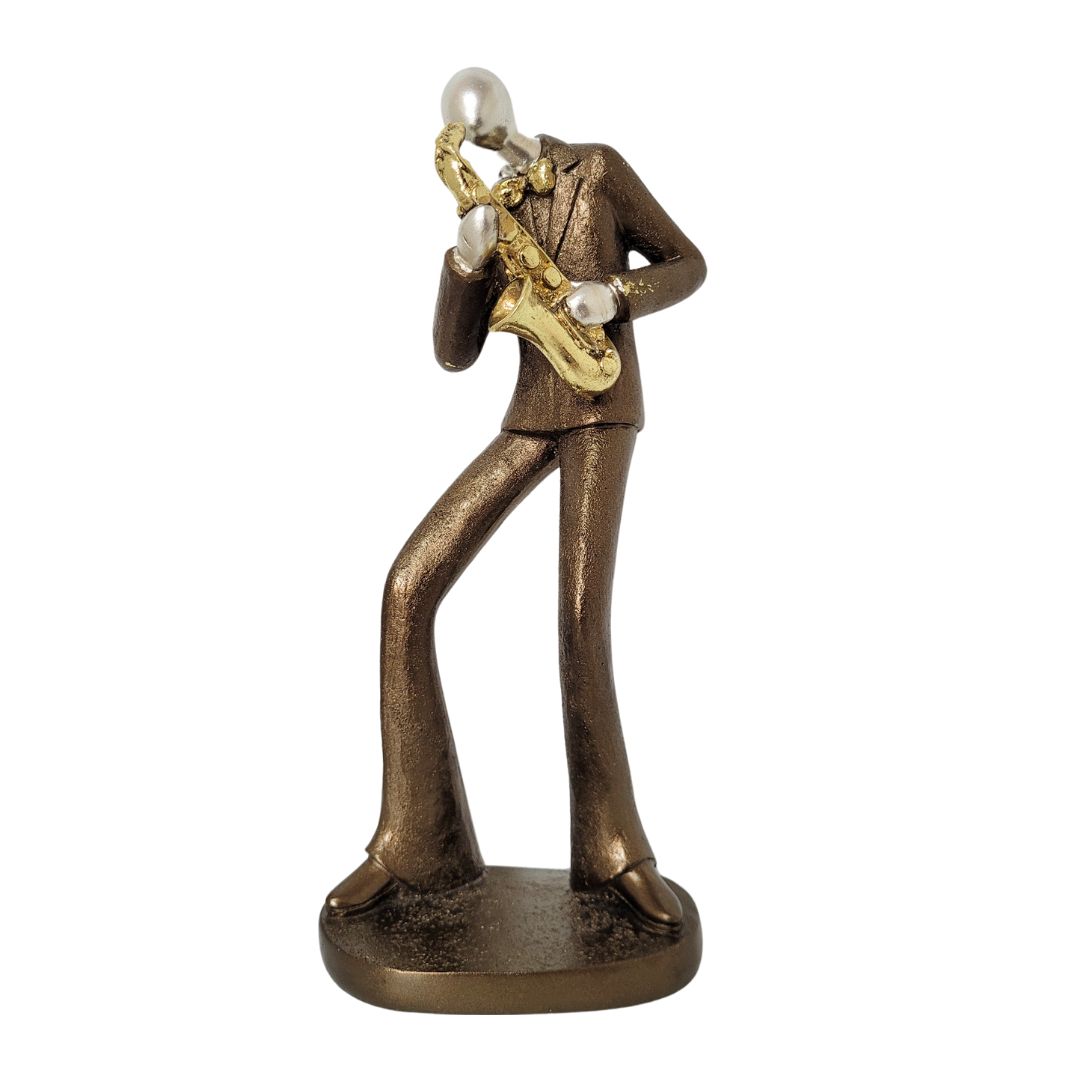 Detalhes Exclusivos: Cada traço desta estatueta foi meticulosamente trabalhado para capturar a essência e a paixão da música. Dos detalhes do saxofone aos movimentos do músico, cada elemento é uma obra de arte por si só.