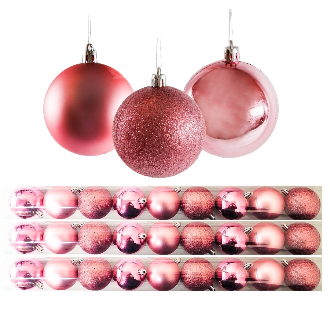 - Jogo 27 Bolas Natal Mista Lisa, Glitter e Fosca Rosê 8cm - Master Christmas