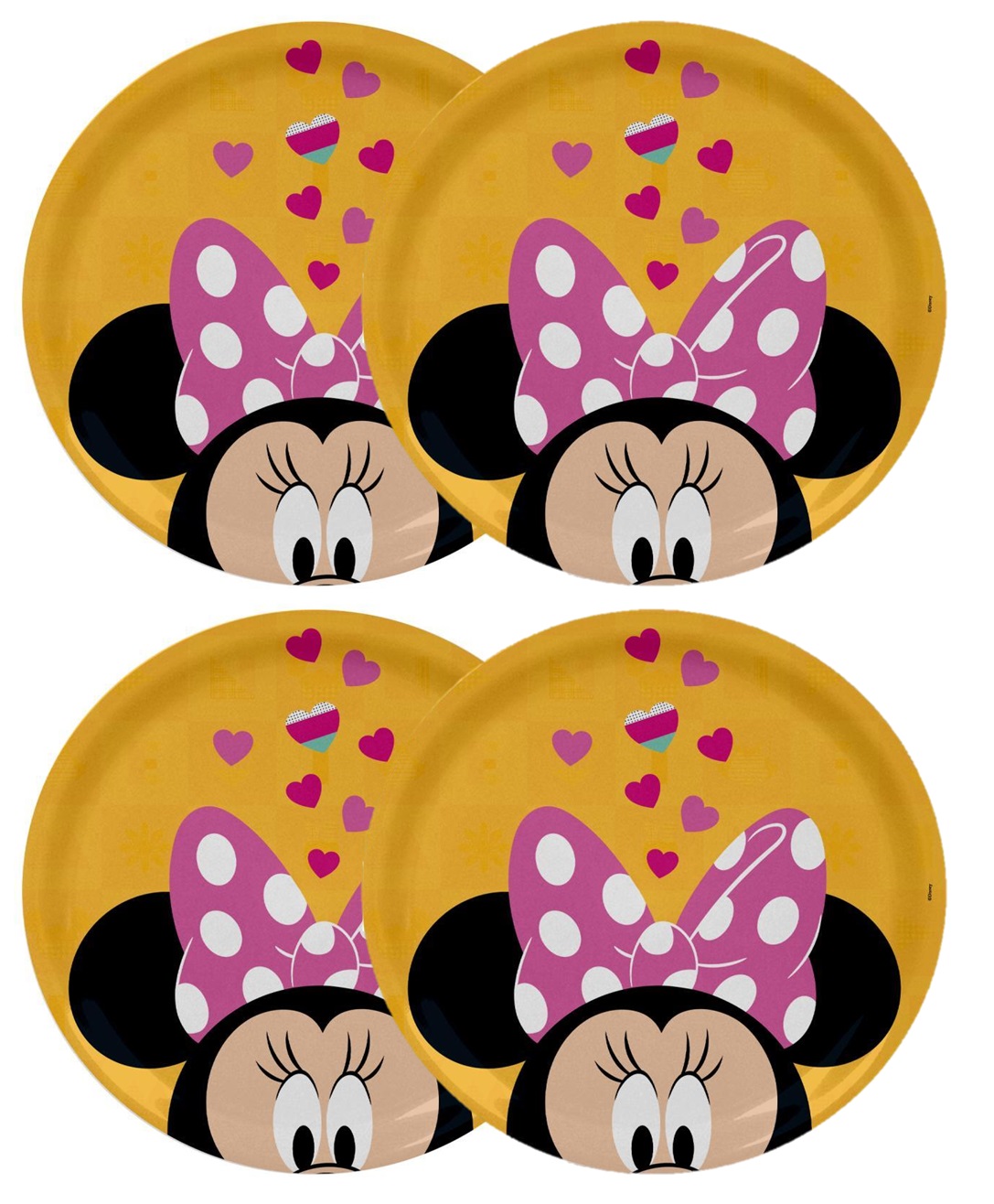-04 unidades Prato Refeição Infantil Raso Melamina Minnie - Tuut