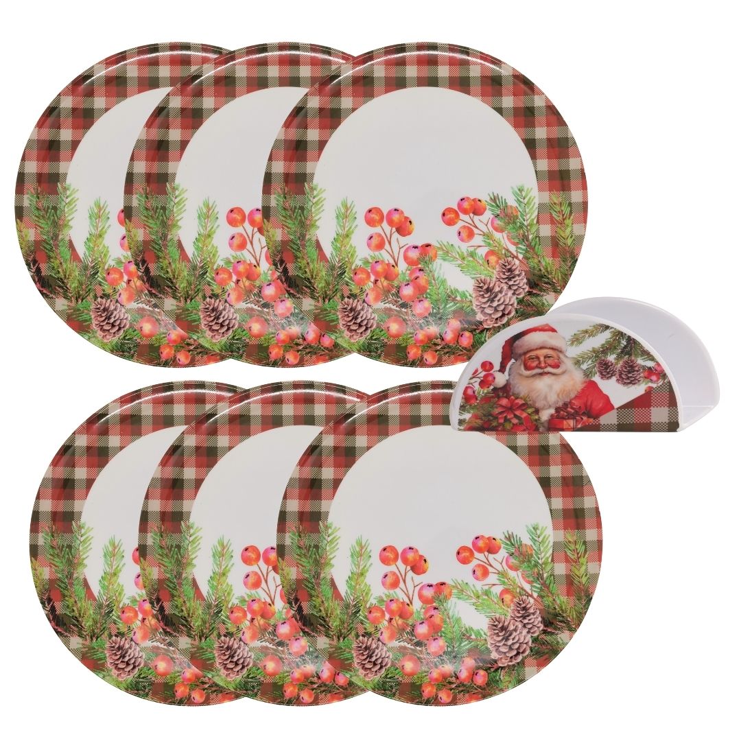 Jogo 6 Pratos de Jantar e Porta Guardanapo Melamina Natal