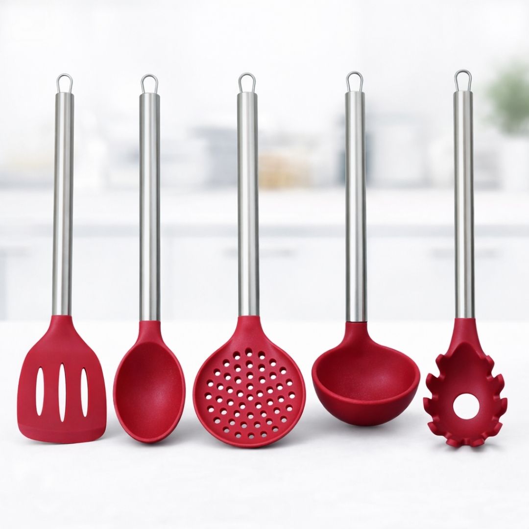 O Jogo de Utensílios de Cozinha em Silicone Premium Vinho Bordô com Cabo Inox Elite é a escolha ideal para quem busca qualidade, durabilidade, segurança e sofisticação na cozinha. Desenvolvido com silicone premium resistente ao calor, este conjunto é perfeito para o uso em panelas antiaderentes, cerâmica, teflon e inox, pois não risca nem danifica o revestimento.