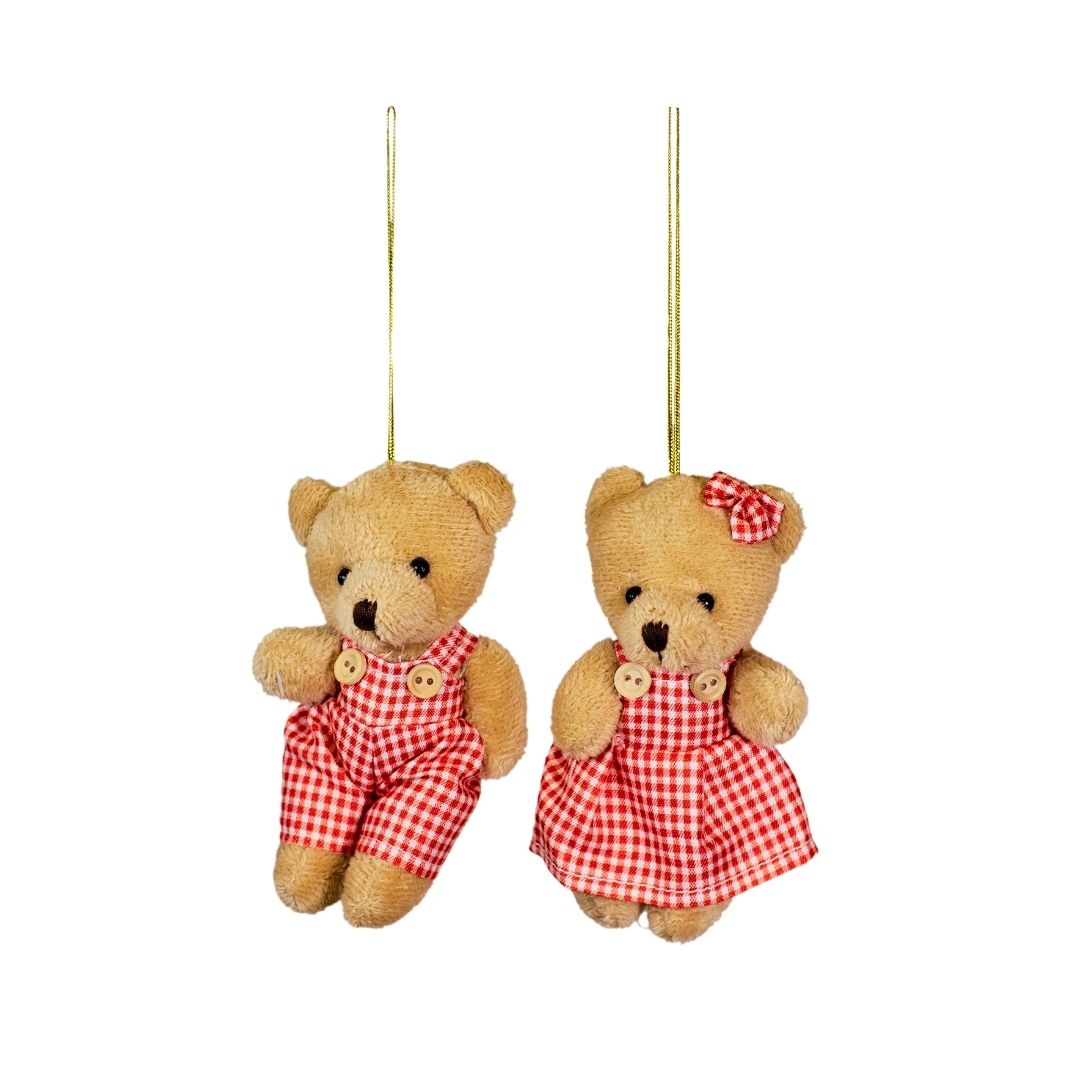 Encante sua decoração natalina com este jogo de ursinhos decorativos em pelúcia bege, vestidos com roupas vermelhas em xadrez clássico e botões frontais que trazem um charme especial. Cada ursinho acompanha cordão para pendurar, permitindo decorar facilmente árvores de Natal, guirlandas, festões ou composições em ambientes internos.