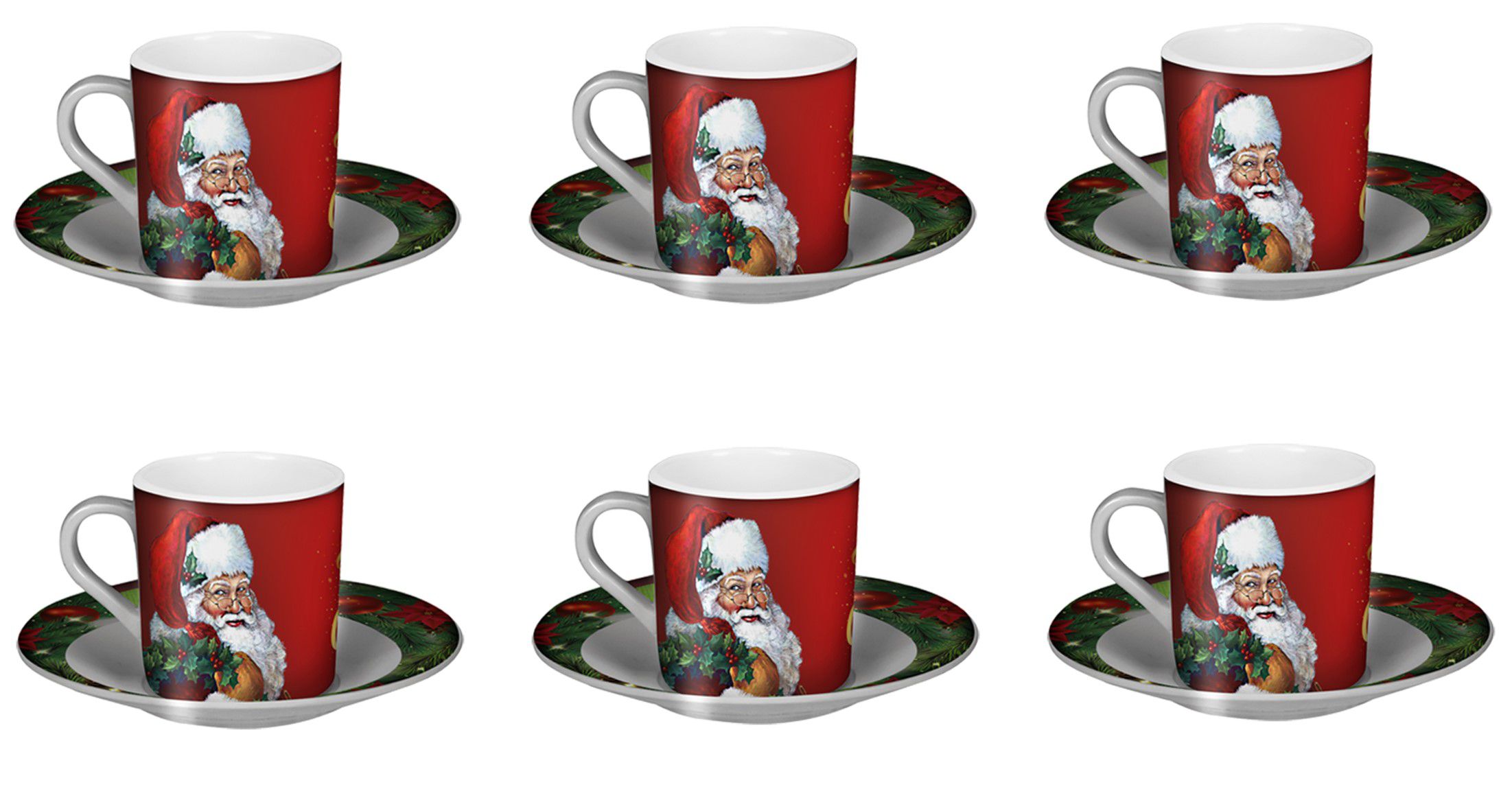 O jogo contempla 6 xícaras e 6 pires decoradas com o tema Feliz Natal!