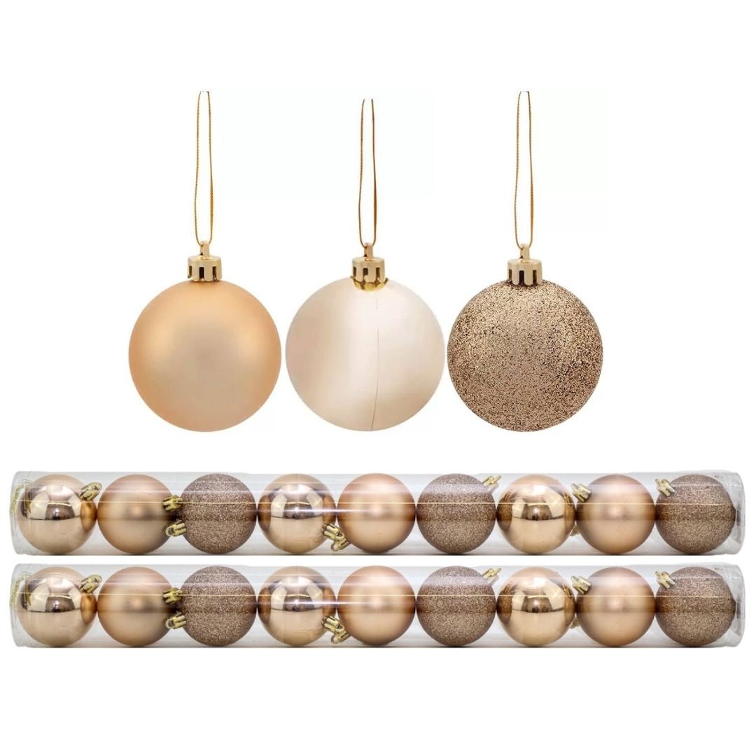 -18 Bolas Natal Mista Glitter, Fosca, Champanhe 6cm - Master Christmas