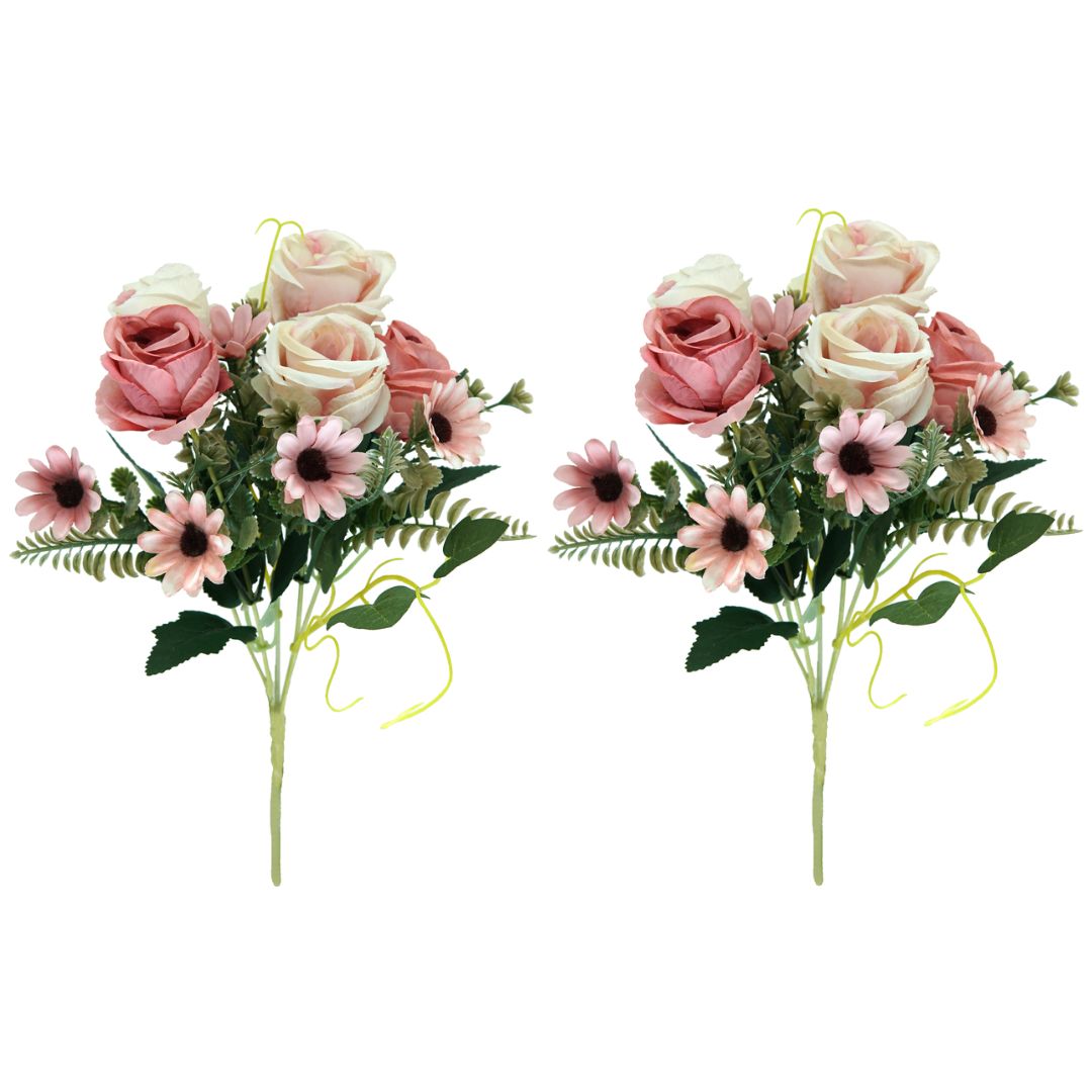 -02 unidades Buquê Mini Botões de Rosas Variadas Rosa 30cm