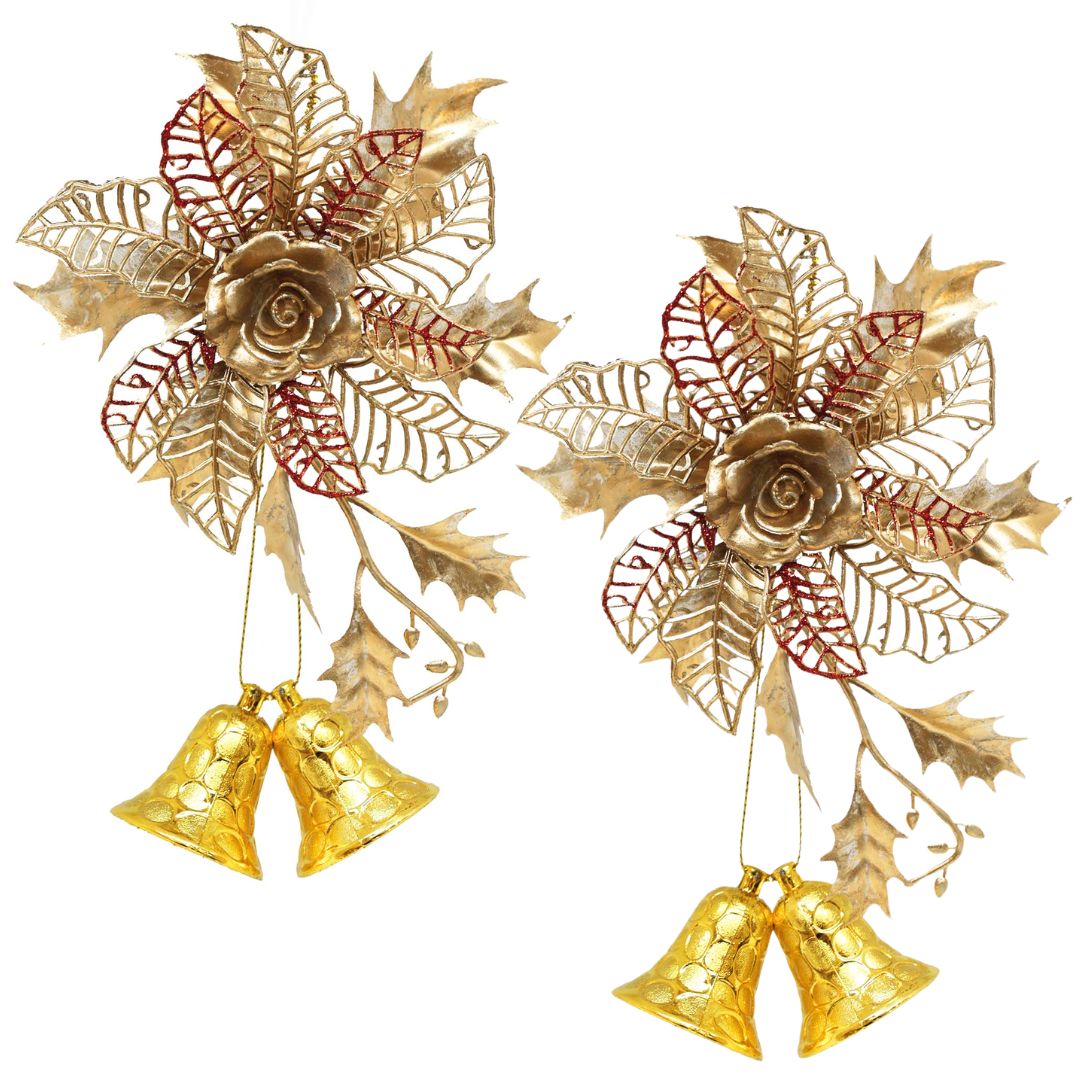 Kit 2 Enfeites Natal Bico de Papagaio e Sinos Dourado 22cm