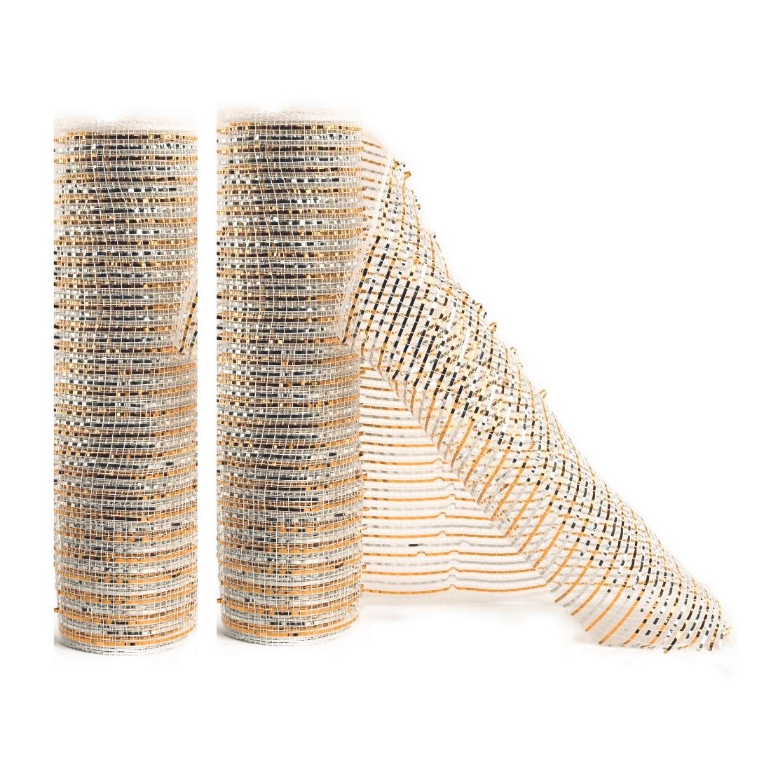 -02 Unidades Tela Decoração Natal Fita 25cm x 5 metros Branco, Prata e Dourado - Magizi