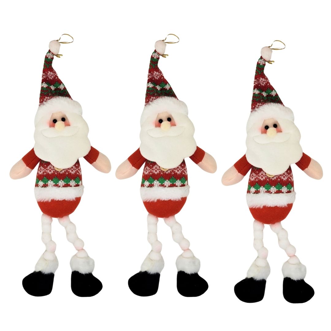 Kit 3 Papai Noel Pelúcia Pendente Perna Algodão 38cm - Master Chirtmas