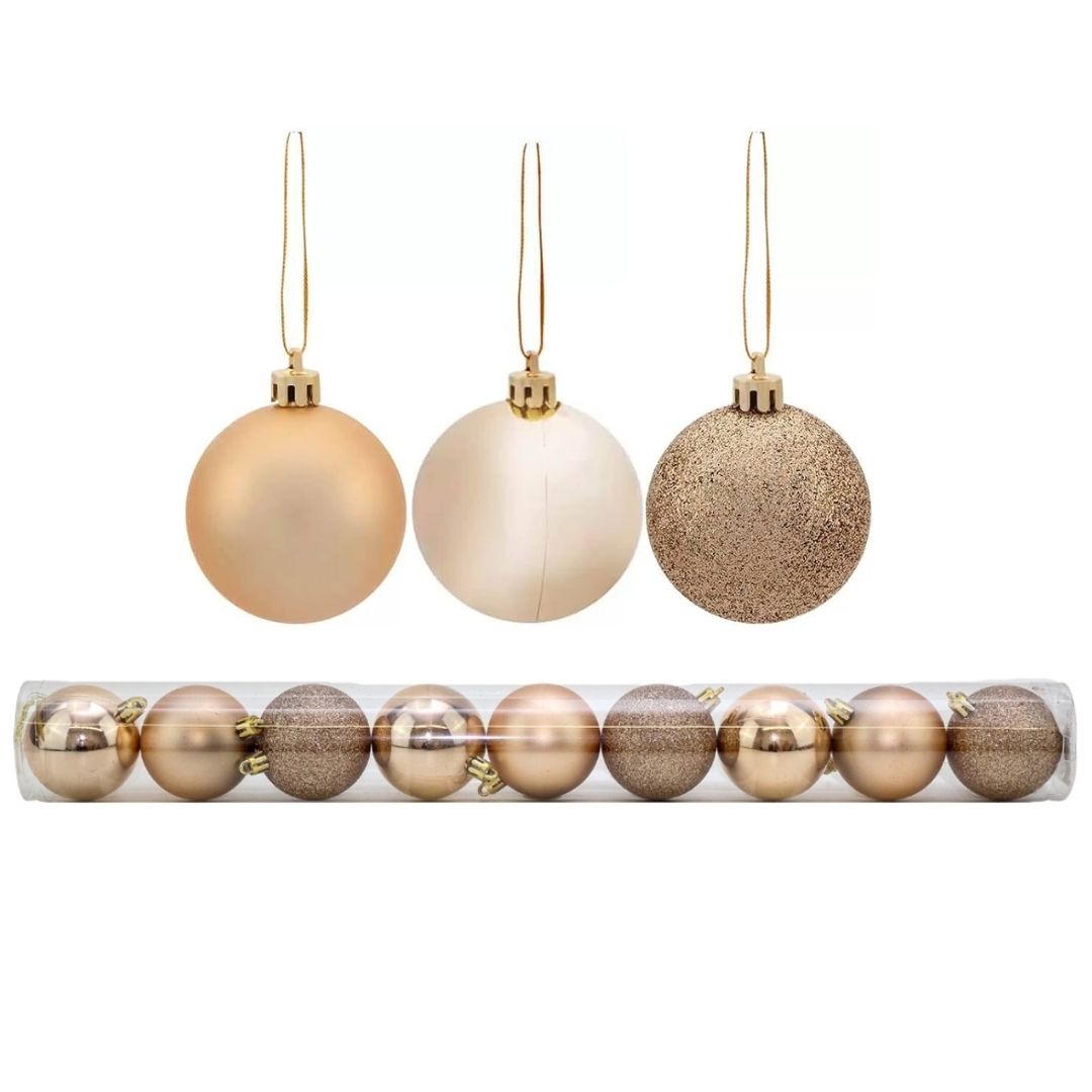 -9 Bolas Natal Mista Glitter, Fosca, Champanhe 6cm - Master Christmas