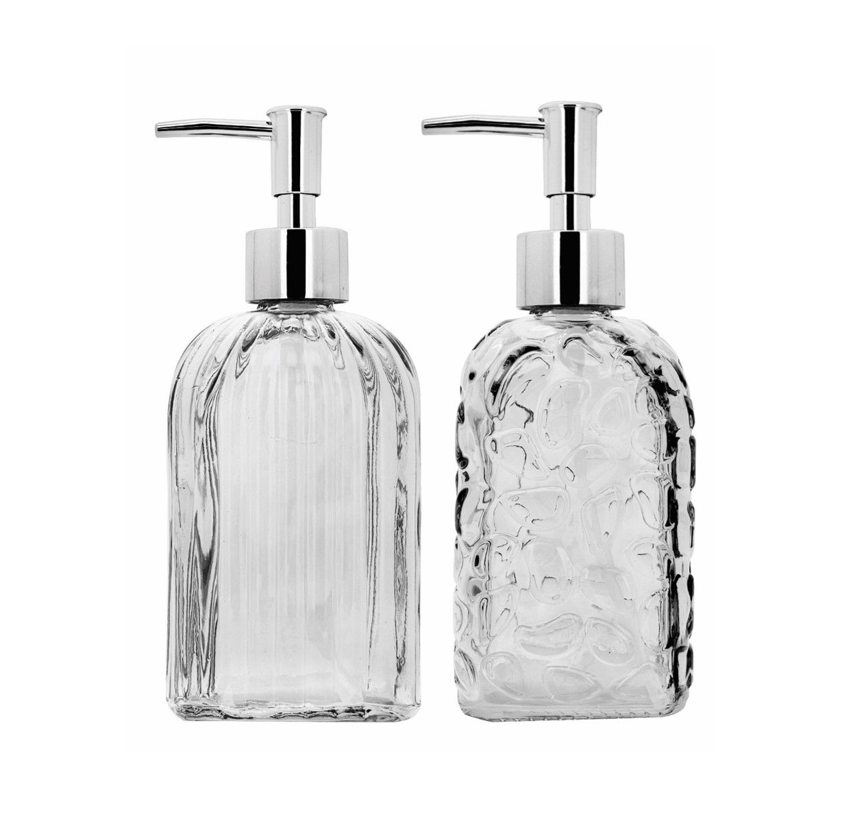-02 unidades Porta Sabonete Líquido em vidro modelo Clear (bico dosador em plástico com revestimento cromado) Capacidade: 500ml - Yazi