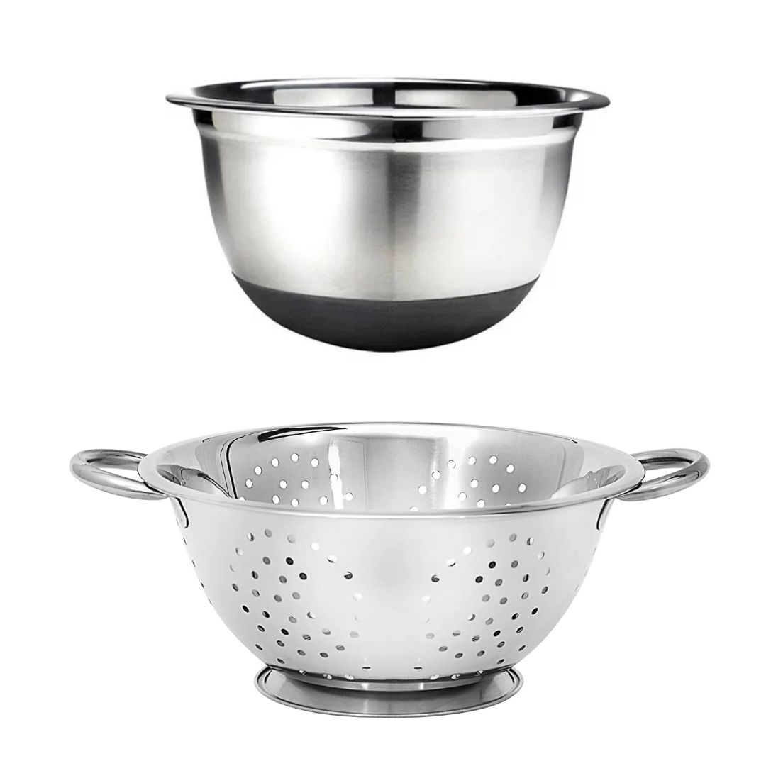 Adicione Funcionalidade e Estilo à Sua Cozinha com o Kit Escorredor de Massa e Bowl Premium em Aço Inox!