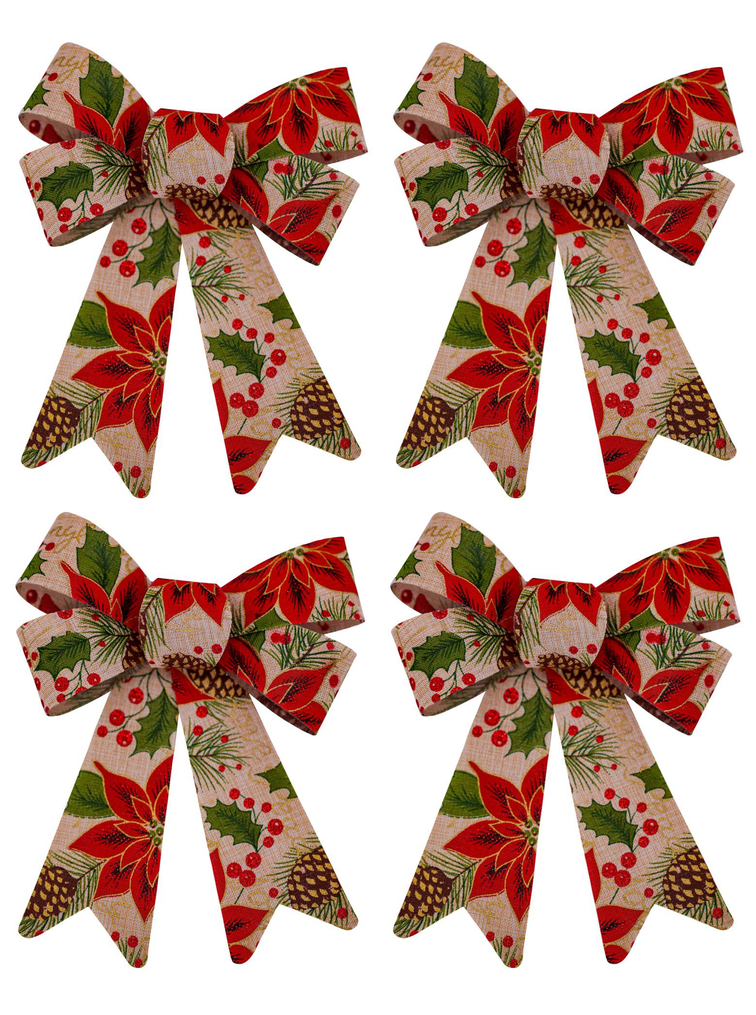 Kit Laço Gigante Decorado Natal Bico de Papagaio e Pinhas 45cm 4 Peças - Magizi