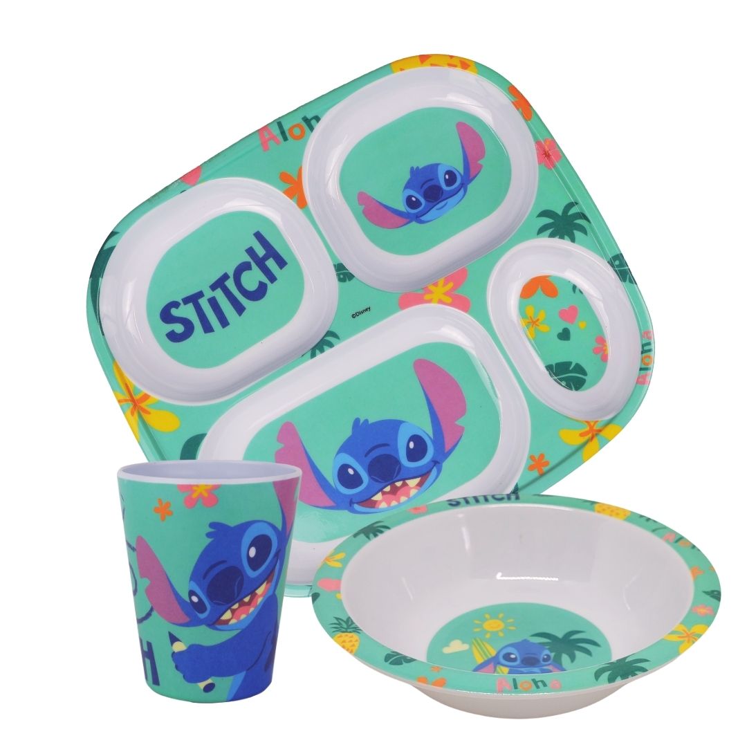 Jogo Refeição Infantil Melamina Stitch Disney 3 Peças