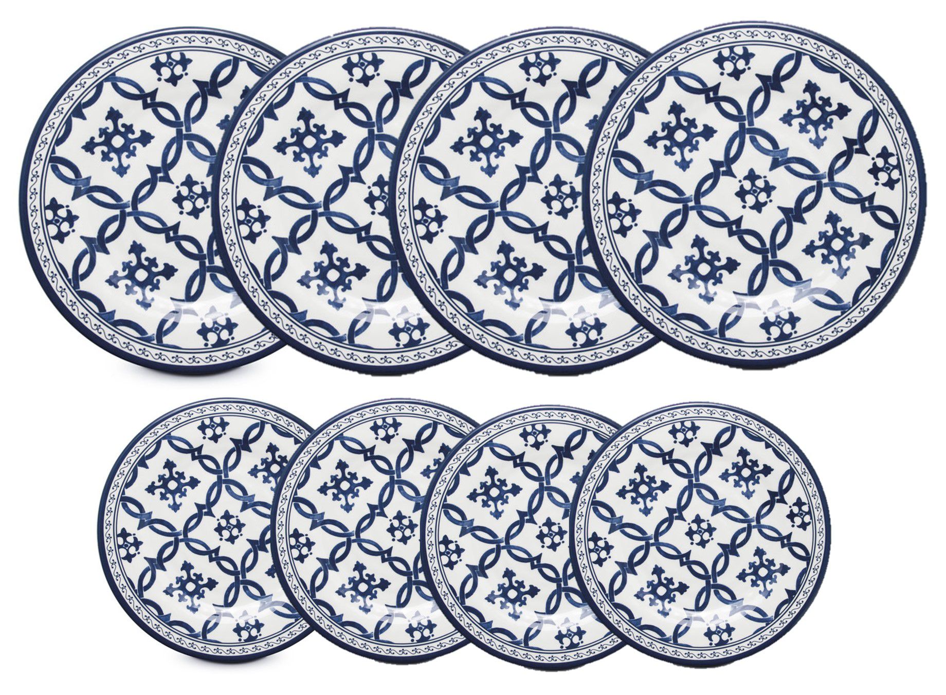 Alguns utensílios são indispensáveis para a sua cozinha e o Jogo De 4 Pratos Melamina Azulejo Português 27cm de Jantar e 4 Pratos de Sobremesa é ideal para servir diversos tipos de alimentos.