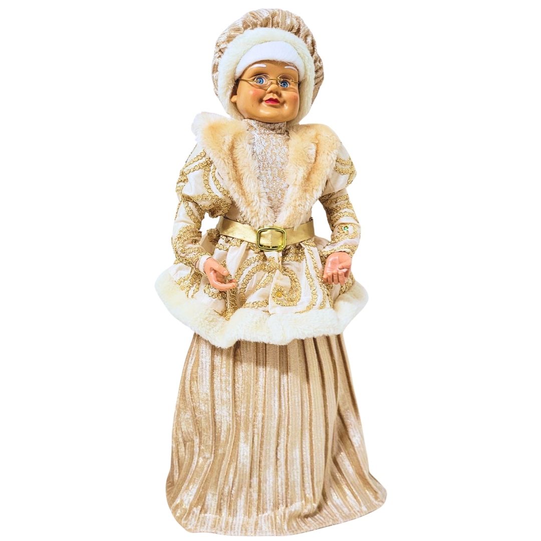 -01 unidade Mamãe Noel Decorativa Vestido Champanhe e Creme Luxo 45cm