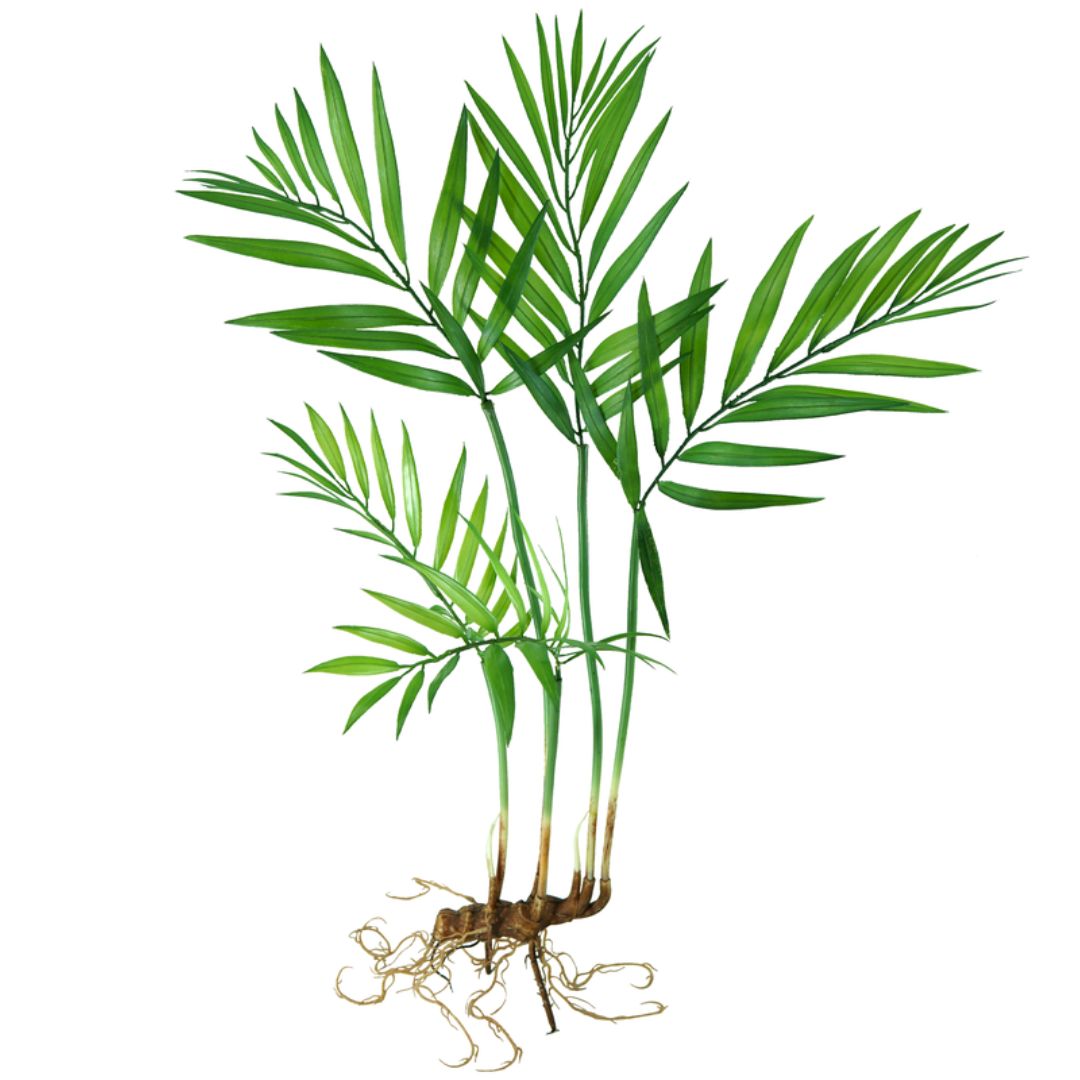 -01 unidade Planta Artificial Palmeirinha Verde 5 Galhos 76cm com Raiz Aparente Luxo