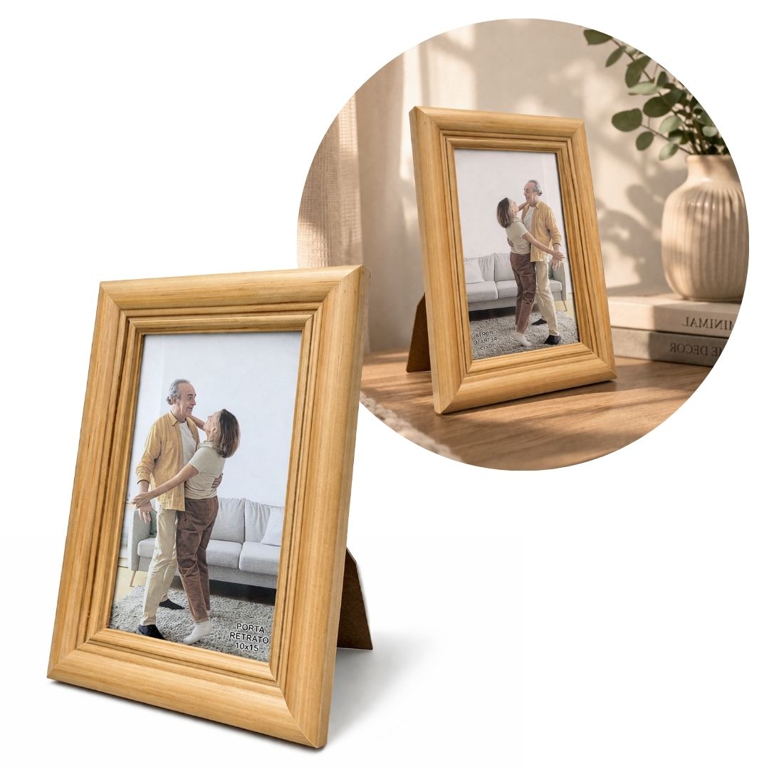 O Porta Retrato 10x15 em madeira clara fosca é a escolha ideal para quem busca um estilo clássico e elegante na decoração. Com acabamento suave e detalhes frisados na moldura, ele valoriza suas fotos com um toque tradicional e aconchegante.