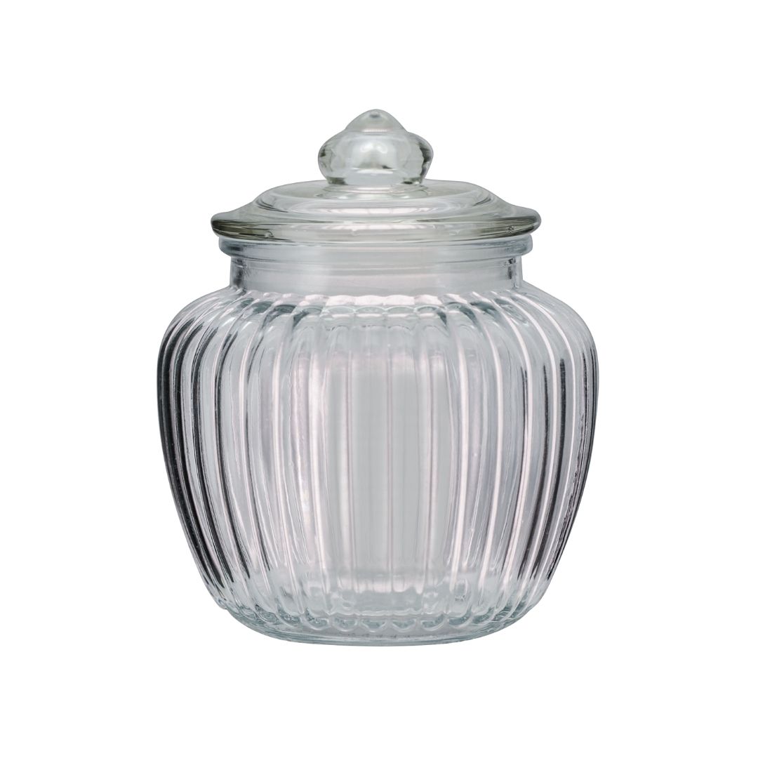 Pote Baleiro de Vidro Canelado Redondo com Tampa Hermética 1400ml – Armazenamento com Estilo e Praticidade