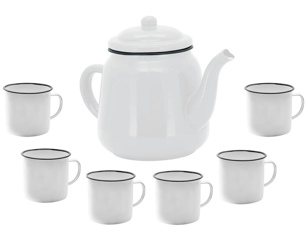 O Conjunto de Bule esmaltado e mini canecas coloridas é exclusivo! Além de servir um belo café quentinho, os itens são muito utilizados em decorações de ambientes deixando sua casa mais charmosa e aconchegante.