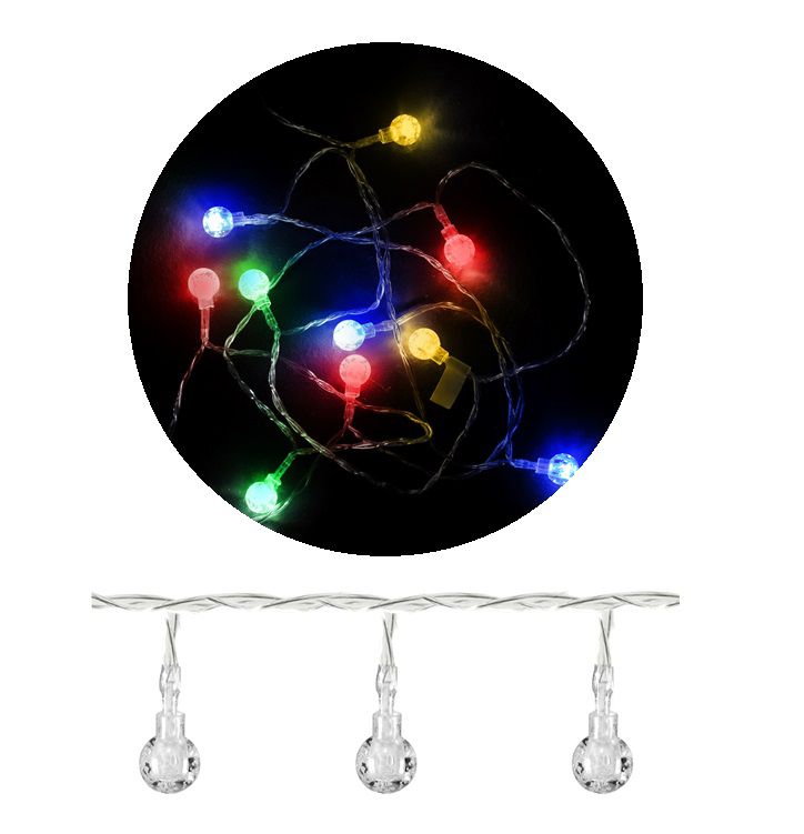 -Cordão Mini Bolas LED Colorido 10 Lâmpadas (1,5cm) 2,30 metros