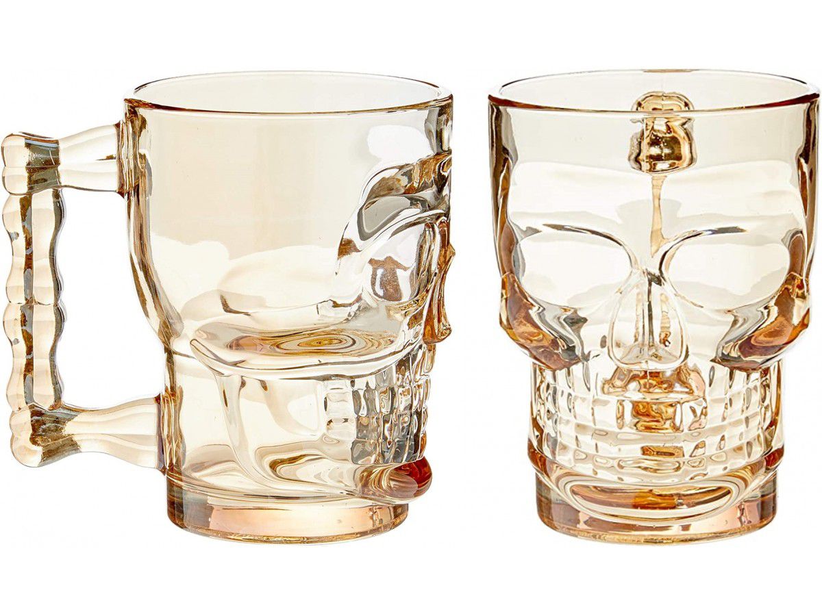 Jogo Caneca Chopp Caveira Rock Style Vidro Ambar 510ml 2 Un