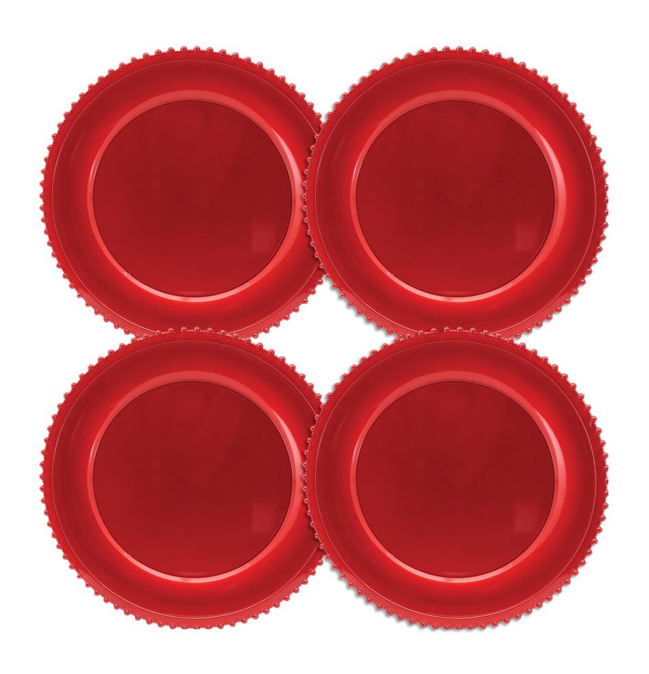 04 unidades Sousplat Borda Decor Vermelho Premium 33cm - Magizi
