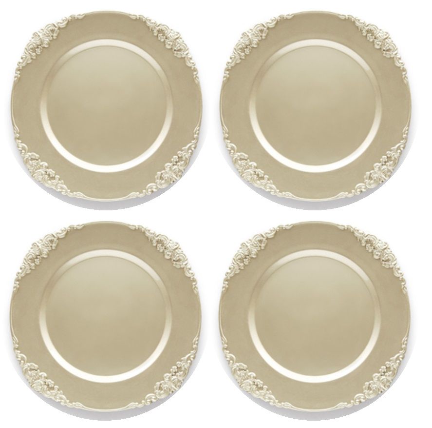 Conteúdo da embalagem: 04 unidades Jogo Sousplat Vitoriano Champagne 33cm 4 Peças - Mimo Style