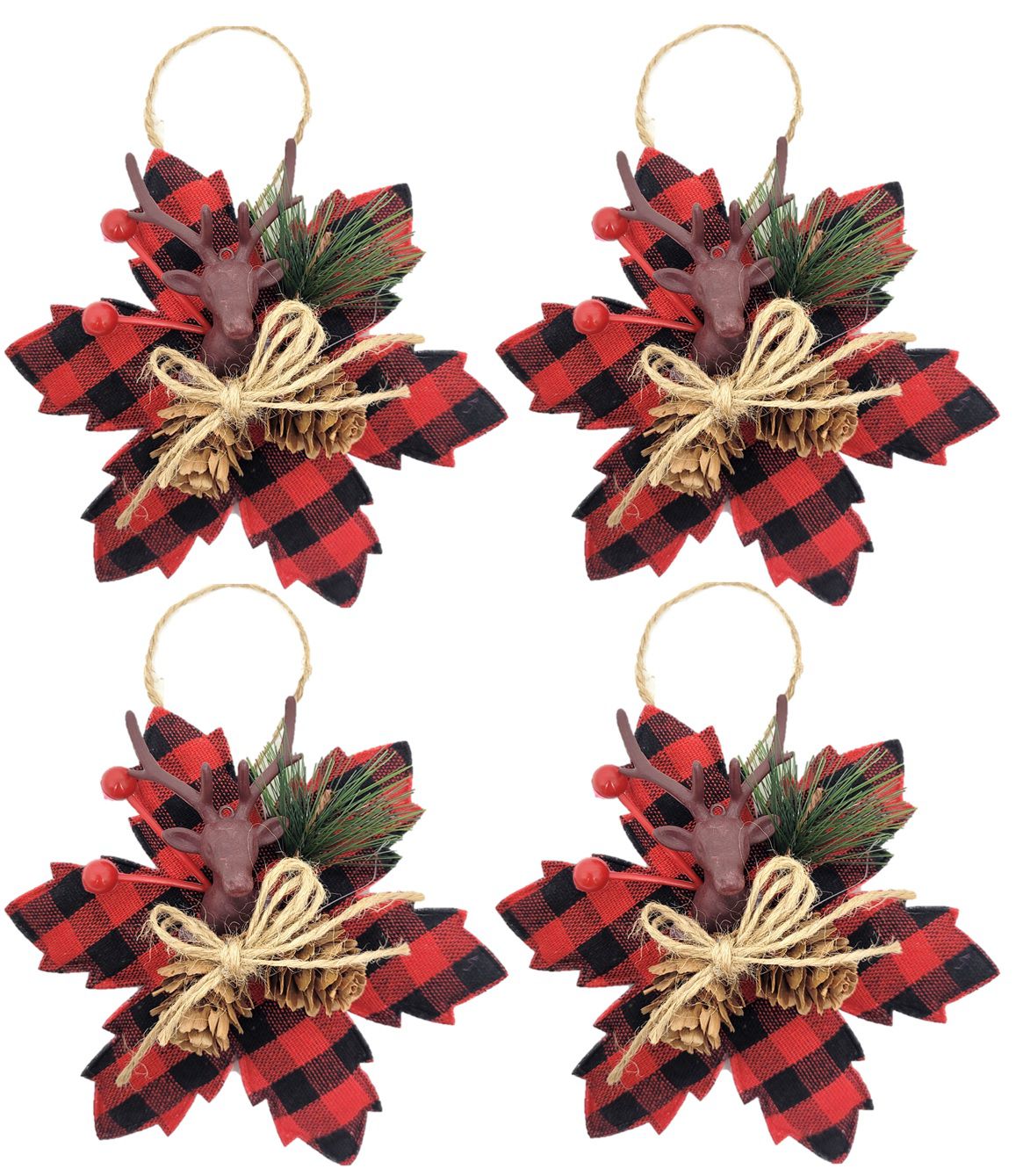 Kit 4 Flores Bico de Papagaio Tecido Xadrez Rena Pinha 14cm