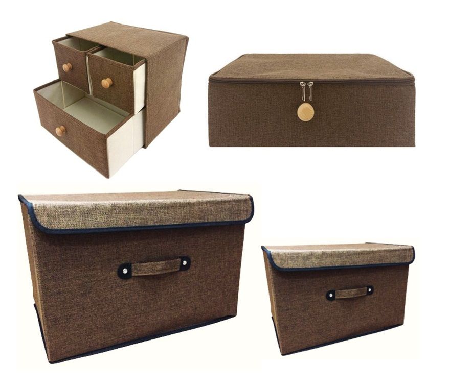 Modelo exclusivo de gaveteiro com 3 gavetas, além de caixa com zíper e puxador madeira e ainda 2 caixas organizadoras grande e pequena Linho Marrom!