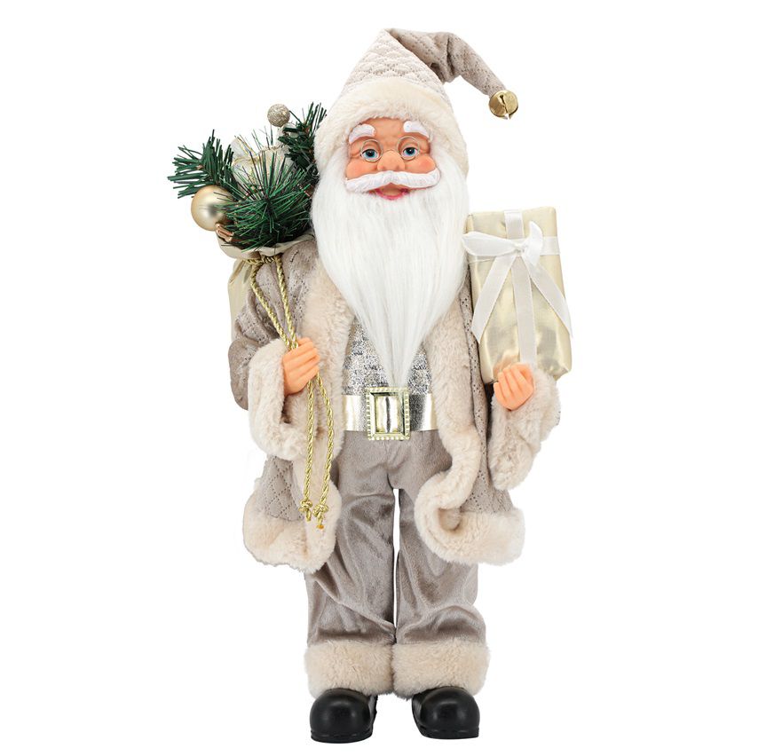 Por isso a trazemos até você um enfeite natalino, com as figuras do querido papai noel, este modelo Luxo tamanho com 40cm de altura, decorado com casaco Champagne Luxo ainda possui enfeites de pinhas e berries, bolas douradas além de um lindo saco de presentes decorado!