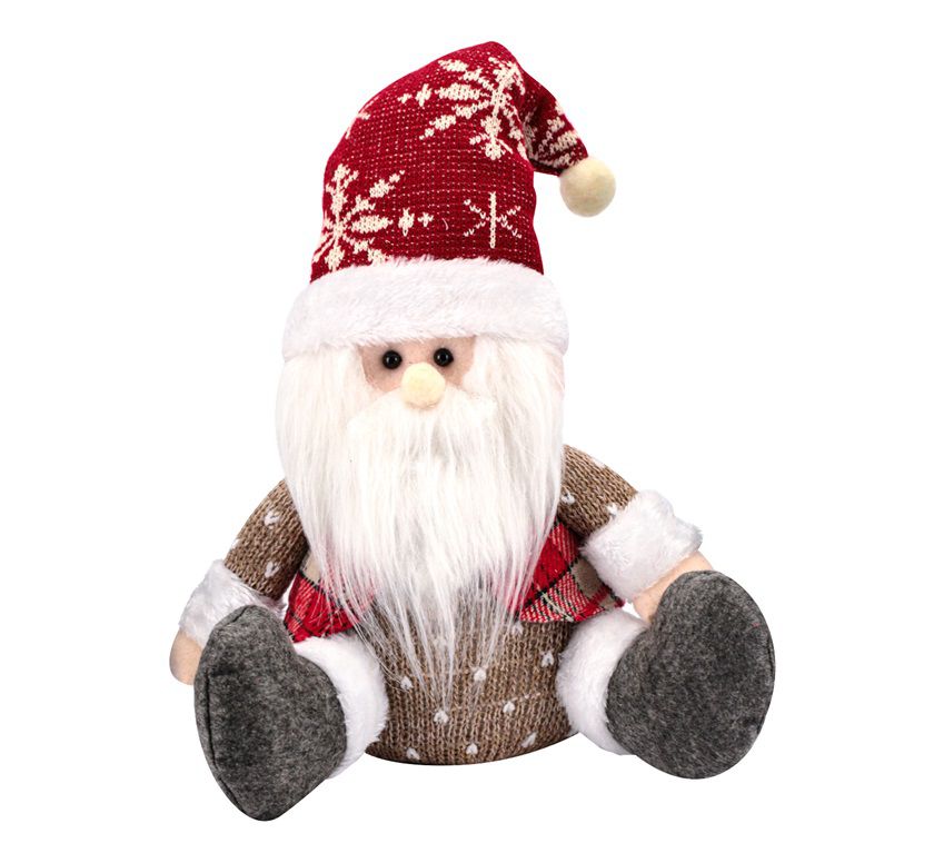 -01 Papai Noel Sentado Peso de Porta Pelúcia Tricô Alpino 30cm - Magizi