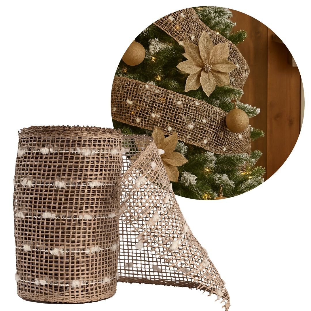 -01 Unidade Tela Decorativa Fita Natal Malha Tule Sisal Flocos de Algodão 15cm x 5 metros – Magizi