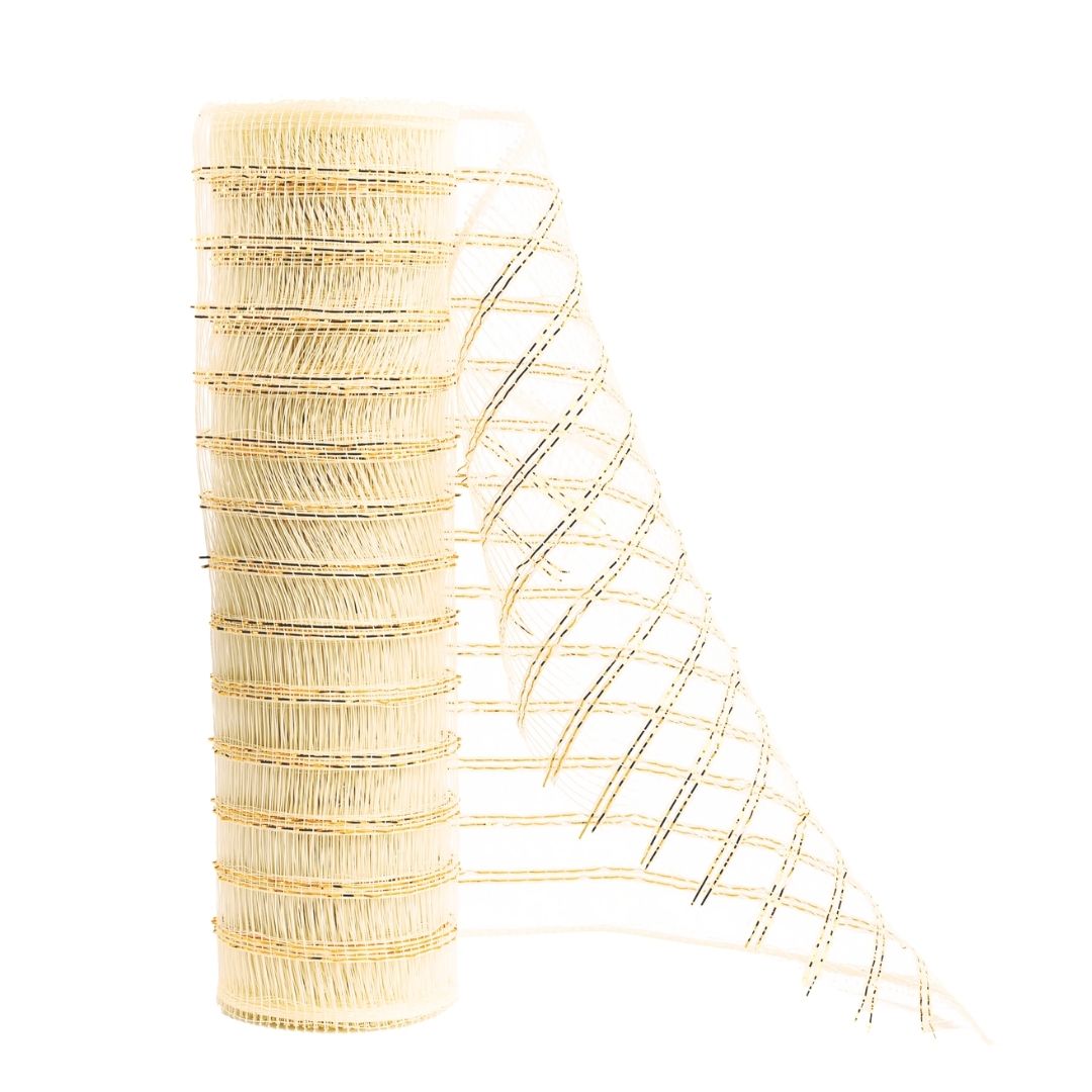 -01 Unidade Tela Decoração Natal Fita 25cm x 5 metros Creme Aberta com Fio Dourado - Magizi